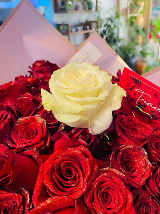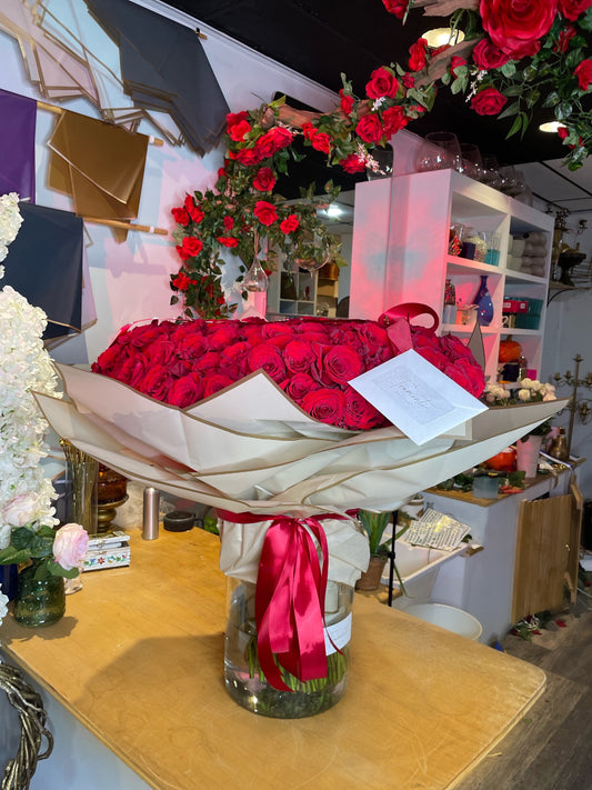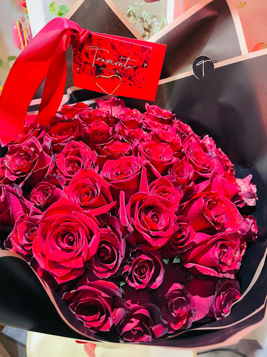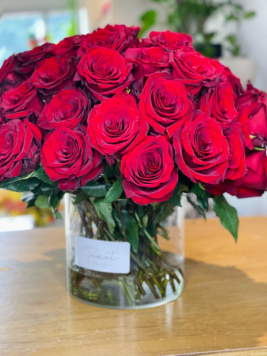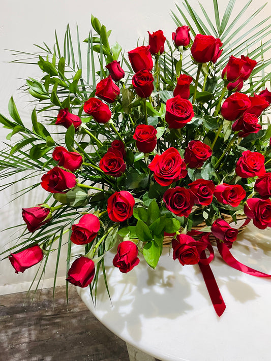 Blooms of Passion: 60 Red Roses in a Greenberg Elegance Basket