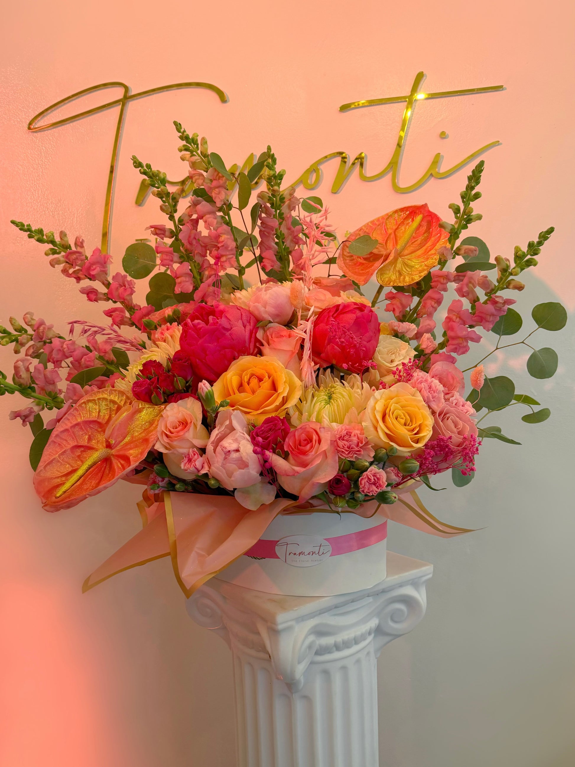 Inspired by the most beautiful sunsets, this arrangement blends delicate flowers with breathtaking sunset colors.