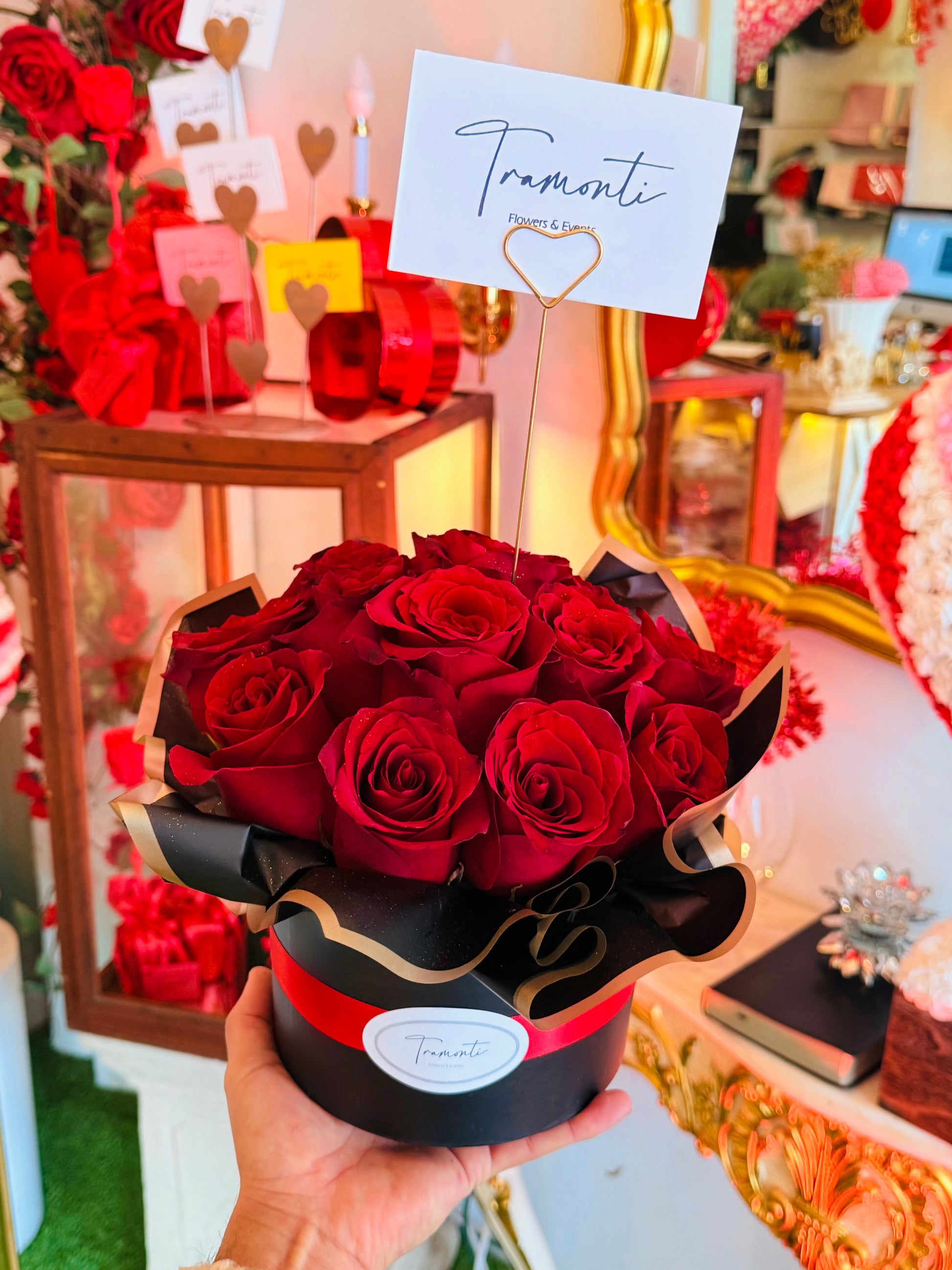 This design is ideal for expressing profound emotions on Valentine’s Day or commemorating a milestone in your love story. Its bold color palette, elegant design, and luxurious presentation make it a centerpiece of this year’s collection, ensuring the recipient feels cherished and adored. “My Love in a Black Bloom Red Box” is not just an arrangement; it’s a timeless symbol of passion and love designed to leave an unforgettable impression.