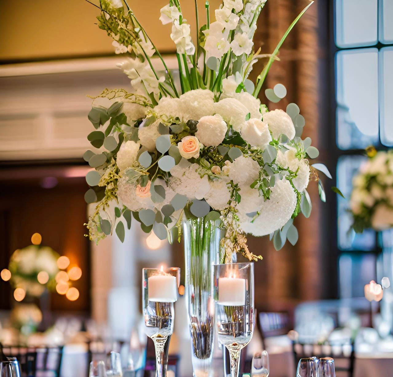 Contact us to bring a touch of pure serenity to your event with this exquisite floral arrangement.
